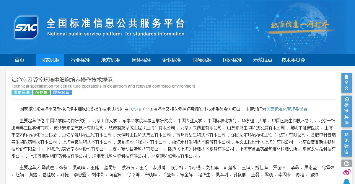 2023年12月28日,國(guó)家市場(chǎng)監(jiān)督管理總局、國(guó)家標(biāo)準(zhǔn)化管理委員會(huì)發(fā)布2023年第20號(hào)國(guó)家標(biāo)準(zhǔn)公告。由深圳市北科生物科技有限公司參與制定的潔凈室及相關(guān)受控環(huán)境領(lǐng)域國(guó)家標(biāo)準(zhǔn)GB/T 43459-202